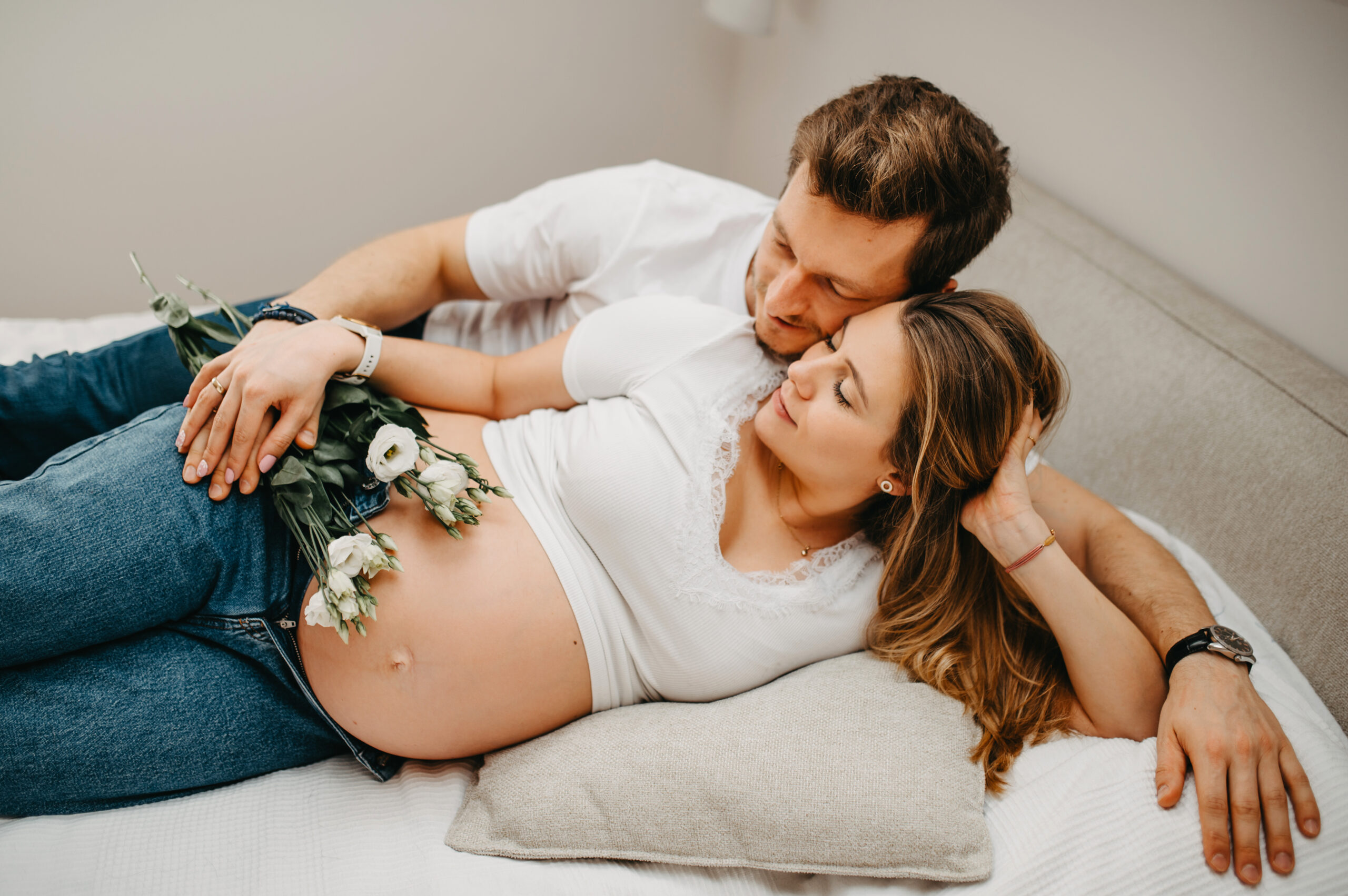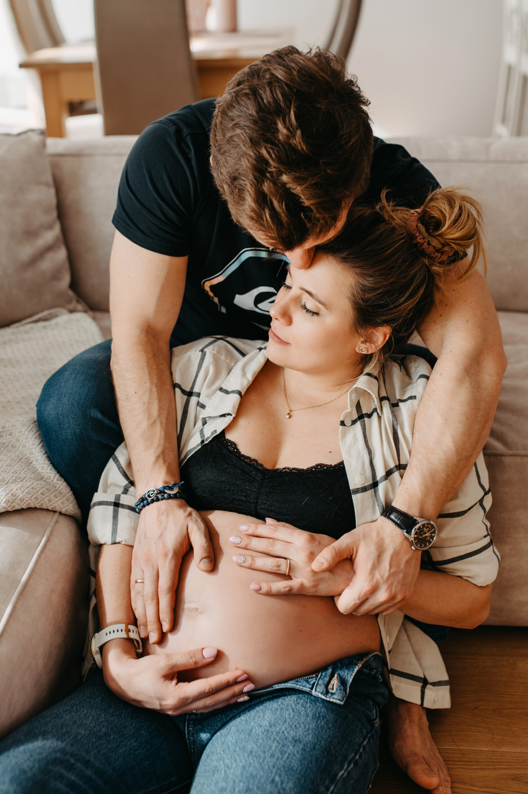 Jakie są zalety sesji domowej? Jeśli macie możliwość wykonać sesję ciążową w swoim domu – bardzo Was do tego namawiam! Taka sesja to wspaniała pamiątka, a we własnym domu będziecie czuć się swobodnie i naturalnie. Wszystko macie pod ręką i możecie rozluźnić się pomiędzy zdjęciami. To też super okazja, żeby do sesji dołączył Wasz zwierzak – piesek czy kotek – to członkowie Waszej rodziny i obowiązkowo muszą pojawić się na zdjęciach!